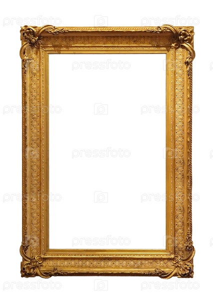 Панорамный золотой каркас для картин, зеркал или фотографий, изолированных на белом фоне, вырез готов