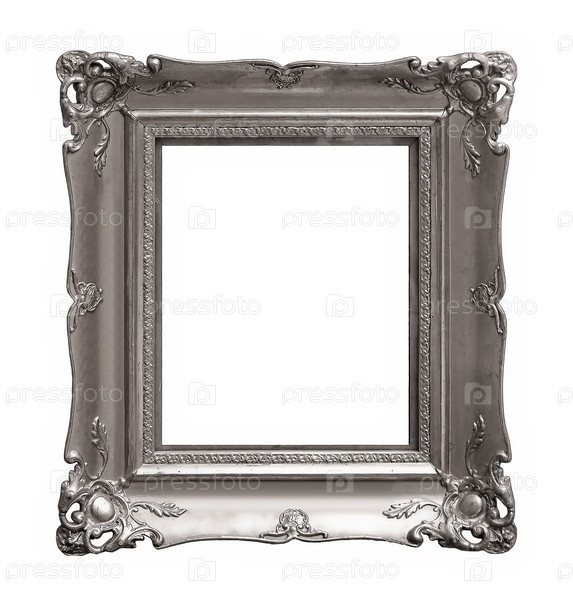 Серебряный каркас для картин, зеркал или фотографий, изолированных на белом фоне, вырез готов
