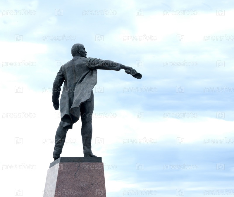 Памятник Владимиру Ленину на Московской площади, Санкт-Петербург (Россия). Бронзовая статуя изолирована на фоне неба, вырез готов
