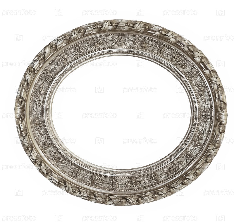 Серебряная овальная рама для картин, зеркал или фотографий, изолированных на белом фоне, вырез готов