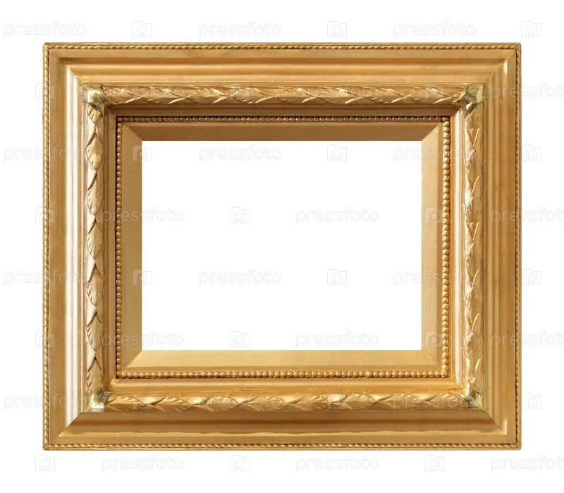 Золотая рама для картин, зеркал или фотографий, изолированных на белом фоне