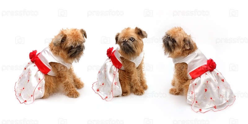 Брюссель Грифон в свадебном платье изолирован на белом фоне