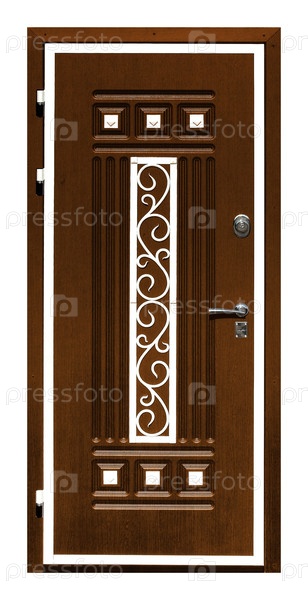 Модель входной металлической двери изолирована на белом фоне