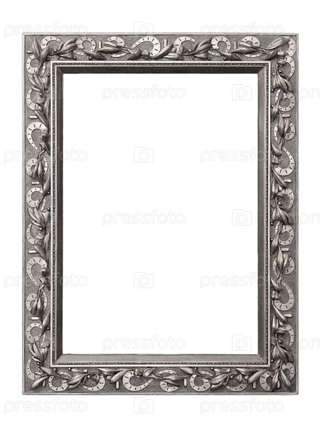 Серебряный каркас для картин, зеркал или фотографий, изолированных на белом фоне, вырез готов