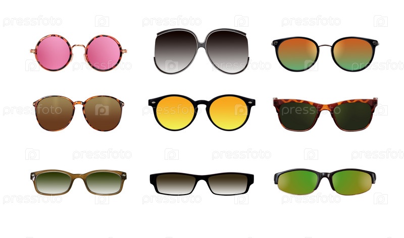 Набор солнцезащитных очков, изолированных на белом фоне для нанесения на портрет