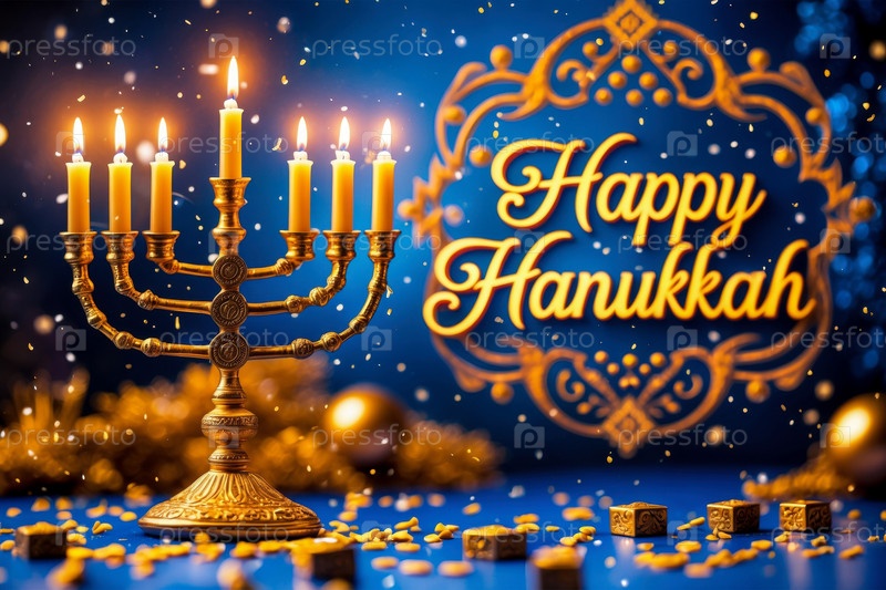 Еврейская поздравительная открытка Хануки, менора со свечами и символ Израиля Звезда Давида