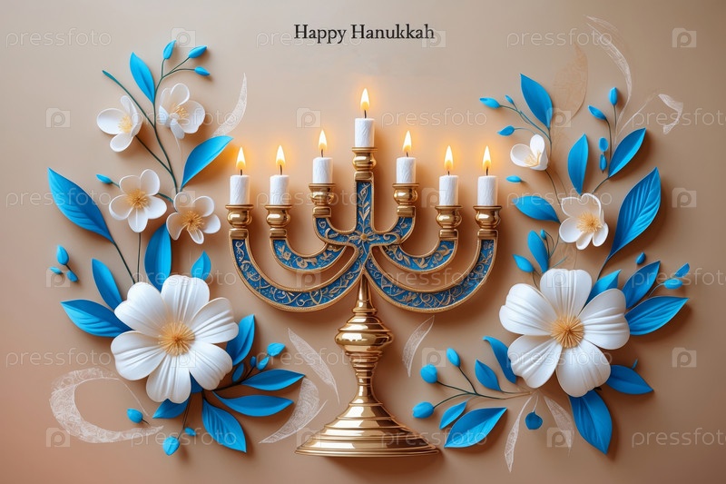 Еврейская поздравительная открытка Хануки, менора со свечами и символ Израиля Звезда Давида