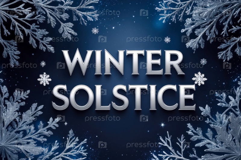 Зимнее солнцестояние поздравительная открытка на украшенном зимнем фоне со льдом и холодным снегом