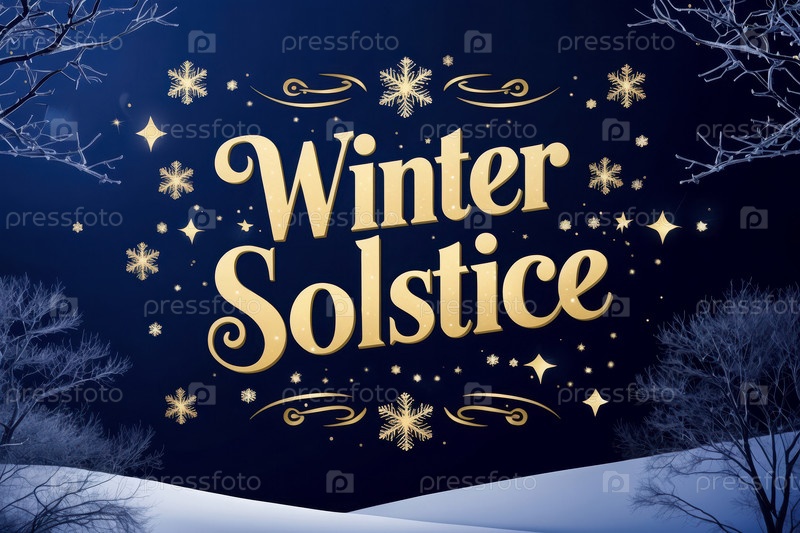 Зимнее солнцестояние поздравительная открытка на украшенном зимнем фоне со льдом и холодным снегом