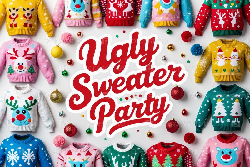 Забавные зимние свитера, украшенные для празднования Рождества