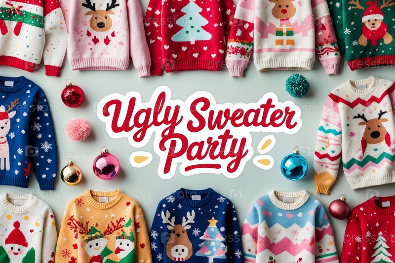 Забавные зимние свитера, украшенные для празднования Рождества
