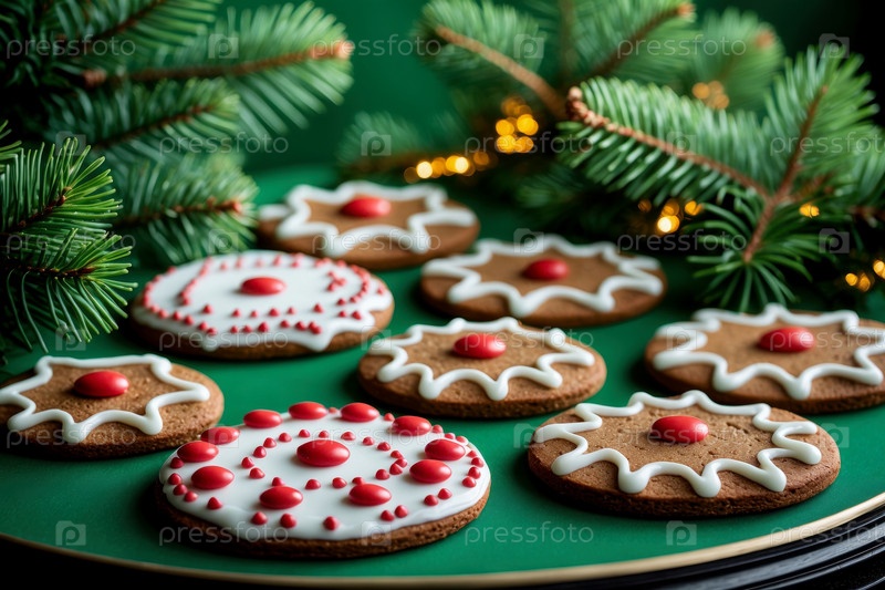 Печенье из пряника лжет На декоративном столе, праздничной рождественской пекарне сладкие конфеты. искусственно созданный