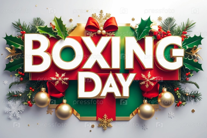 Поздравление с Днем бокса Happy Boxing Day Карточный баннер на праздничном украшенном рождественском фоне