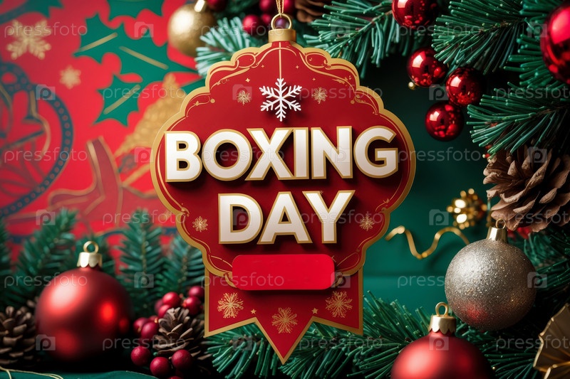 С Днем бокса поздравляем Карточный баннерный постер на праздничном украшенном рождественском фоне AI Generative