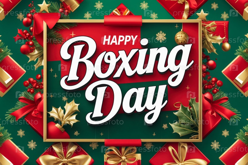 Поздравление с Днем бокса Happy Boxing Day Карточный баннер на праздничном украшенном рождественском фоне