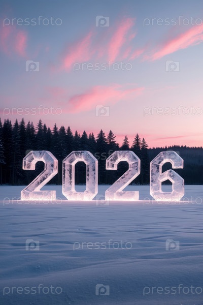 С новогодней поздравительной открыткой 2026 года, ледовые номера в снегу на фоне зимнего леса