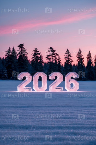 С новогодней поздравительной открыткой 2026 года, ледовые номера в снегу на фоне зимнего леса