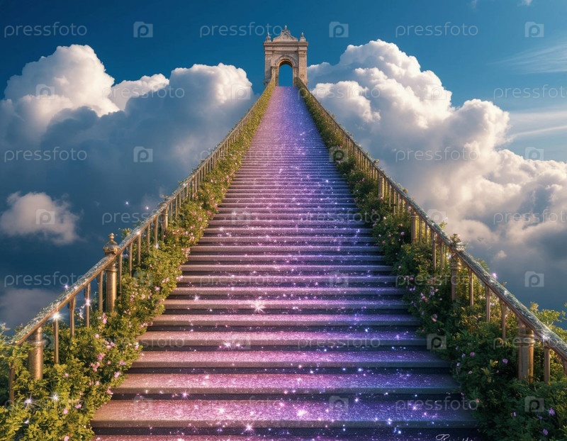 Роскошная широкая парадная лестница на небеса. Сгенерированный ИИ