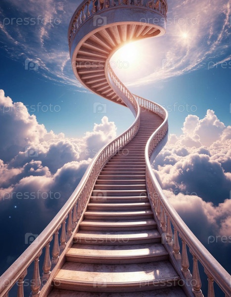 Великолепная винтовая лестница в небо. Сгенерированный ИИ