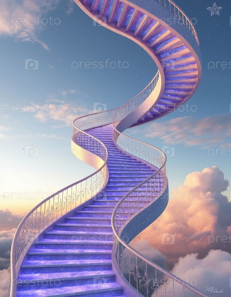 Великолепная винтовая лестница в небо. Сгенерированный ИИ