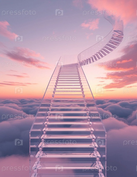 Прозрачная лестница в небо. Сгенерированный ИИ