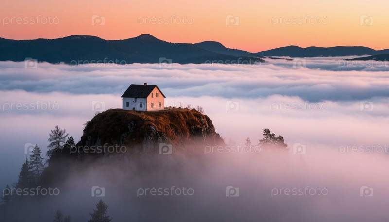 Одинокий дом в горах. Сгенерированный ИИ