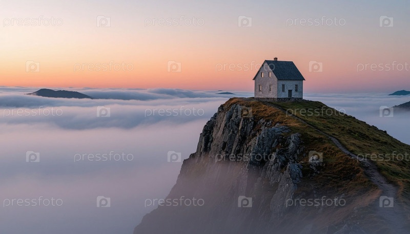 Одинокий дом в горах. Сгенерированный ИИ