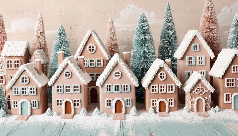Хлебные домики на столе. Сгенерированный ИИ