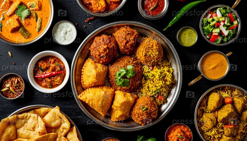 Индийские блюда на столе. Сгенерированный ИИ