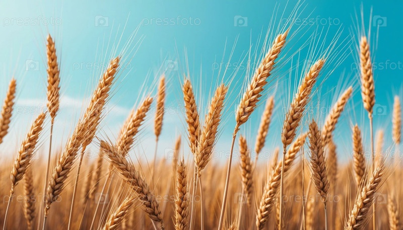 Спелая пшеница и нежное голубое небо, знамя. Сгенерированный ИИ