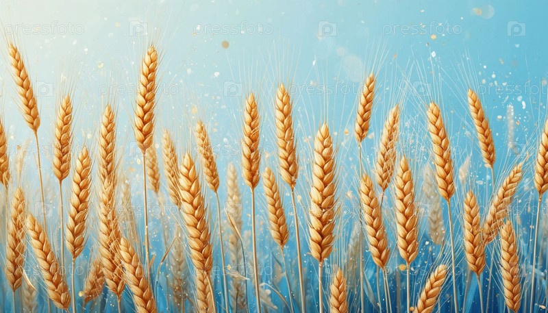 Спелая пшеница и нежное голубое небо, знамя. Сгенерированный ИИ