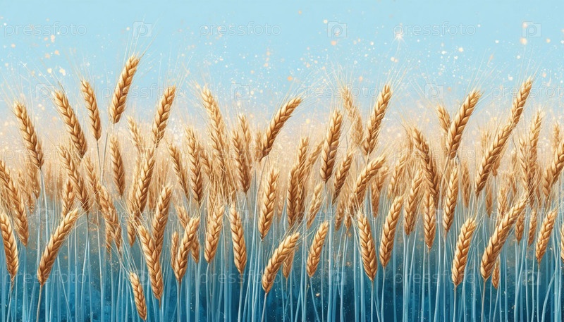 Спелая пшеница и нежное голубое небо, знамя. Сгенерированный ИИ