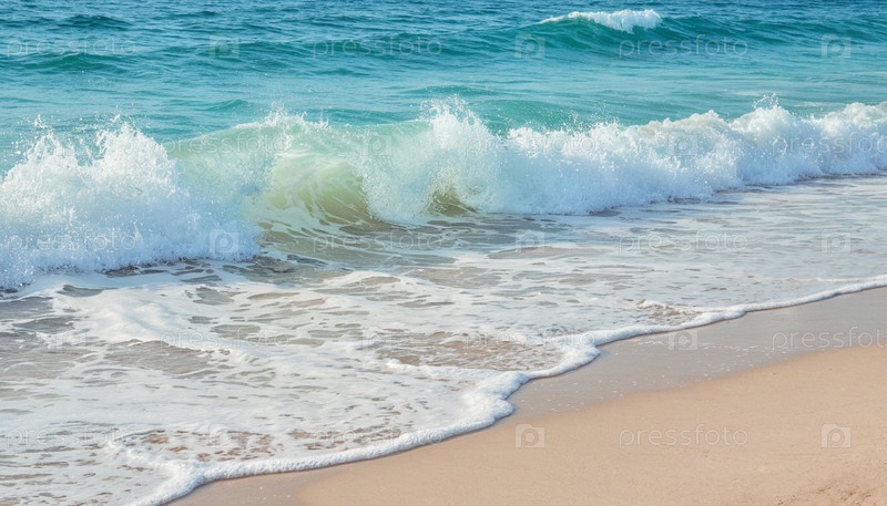 Синяя волна и песчаный берег. Сгенерированный ИИ