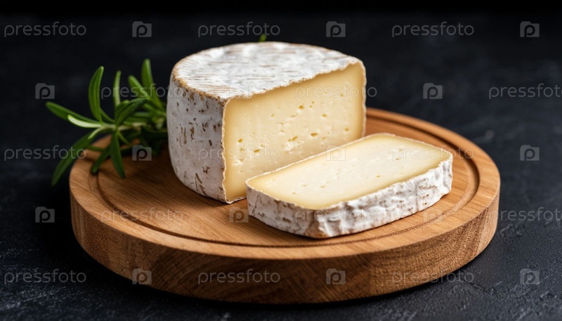 Козий сыр на черном фоне, копия пространства. Сгенерированный ИИ