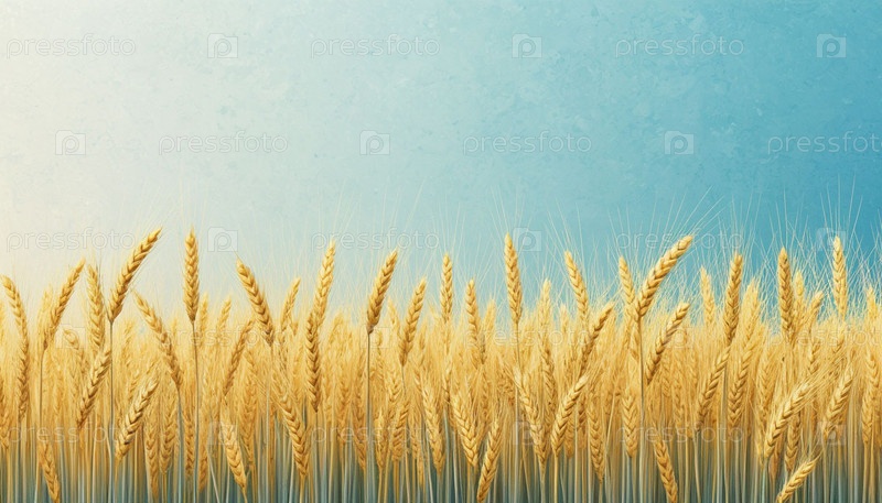 Спелая пшеница и нежное голубое небо, знамя. Сгенерированный ИИ