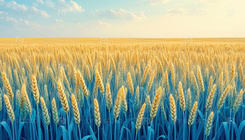 Спелая пшеница и нежное голубое небо, знамя. Сгенерированный ИИ