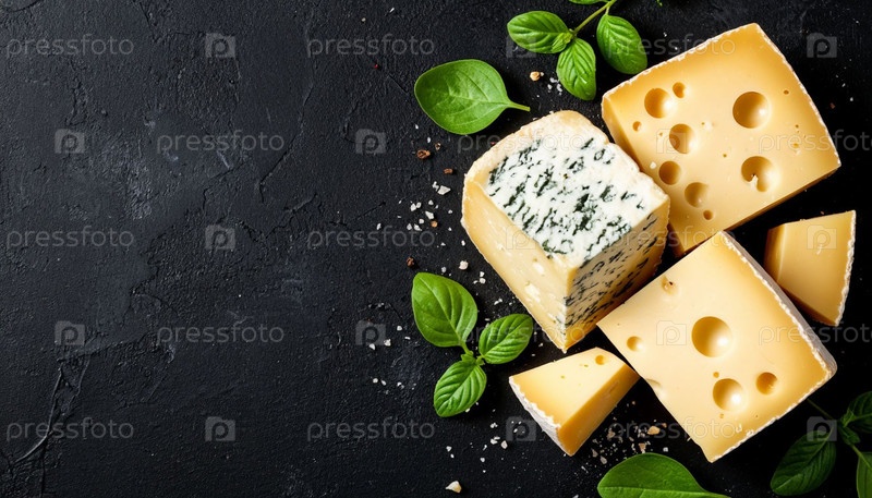 Синий сырный бри на черном фоне, пространство для копирования. Генерируется ИИ