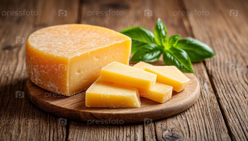 Пармезанский сыр на деревянном фоне, копировальное пространство. Сгенерированный ИИ