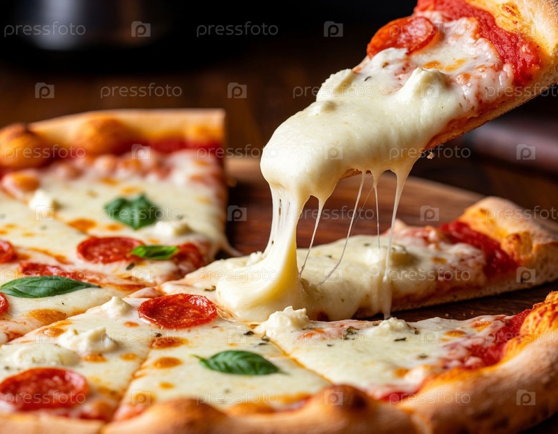 Сыр тянет за кусочек пиццы. Сгенерированный ИИ
