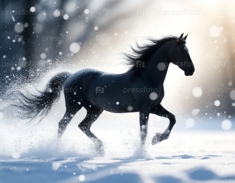 Силуэт лошади на снежном фоне метели. Новый год 2026. Генерируется ИИ