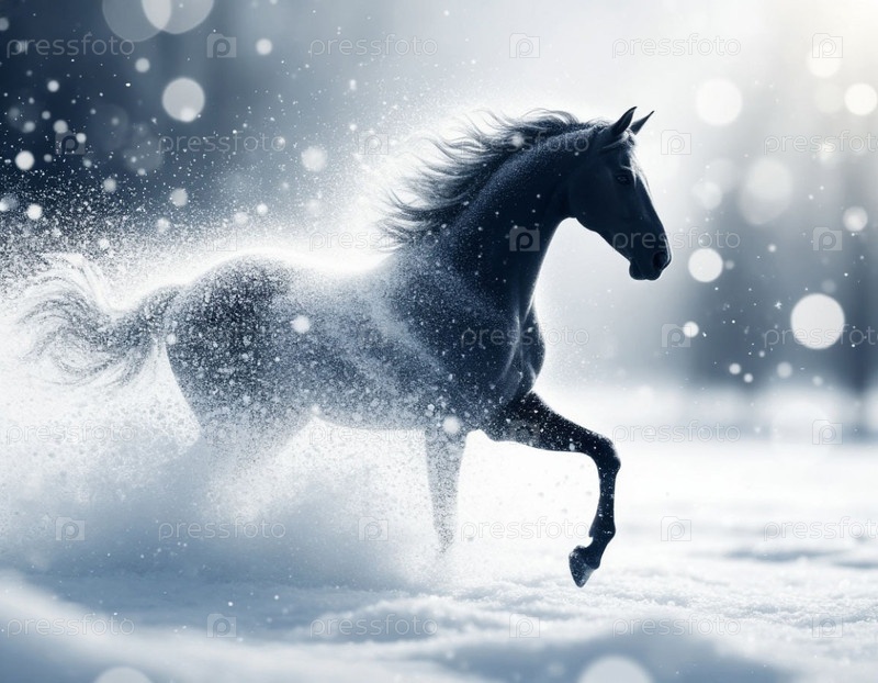 Силуэт лошади на снежном фоне метели. Новый год 2026. Генерируется ИИ