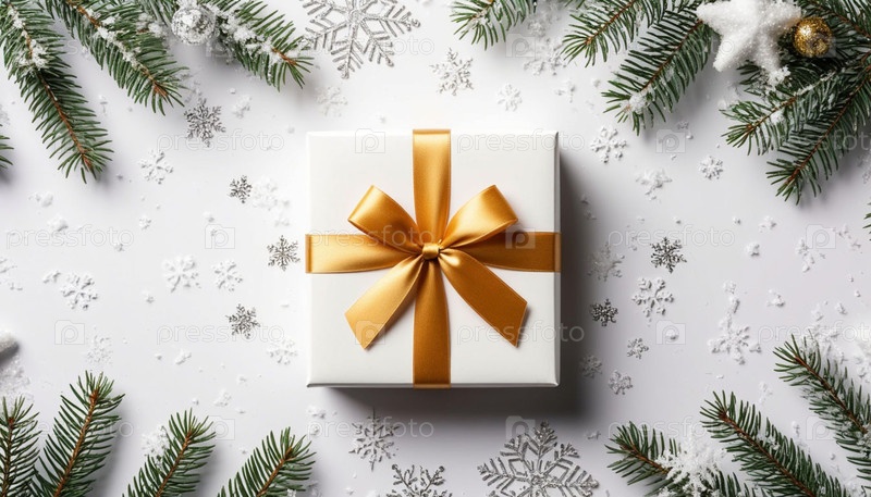 Рождественский минималистский фон с пространством для копирования и подарочной коробкой. Рождество. Новый год. Генерируется ИИ