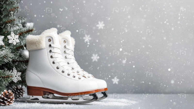 Минимальный новогодний фон с коньками. Копируйте пространство. Генерируется ИИ