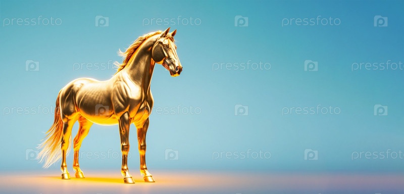 Золотая лошадь 2026 года на синем фоне. Генерируется ИИ