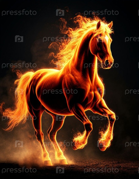 Силуэт огненной лошади на темном фоне. Генерируется ИИ