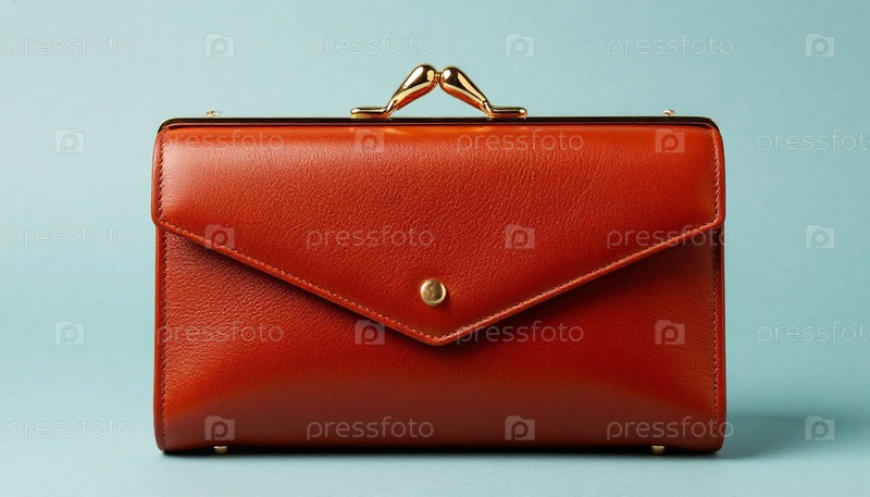 Женское кожаное сцепление на пастельном серо-голубом фоне. Сгенерированный ИИ