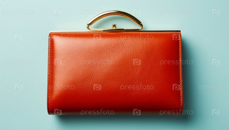 Женское кожаное сцепление на пастельном серо-голубом фоне. Сгенерированный ИИ