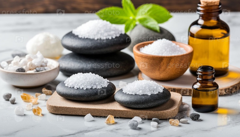 Спа предметы на белом столе. Сгенерированный ИИ
