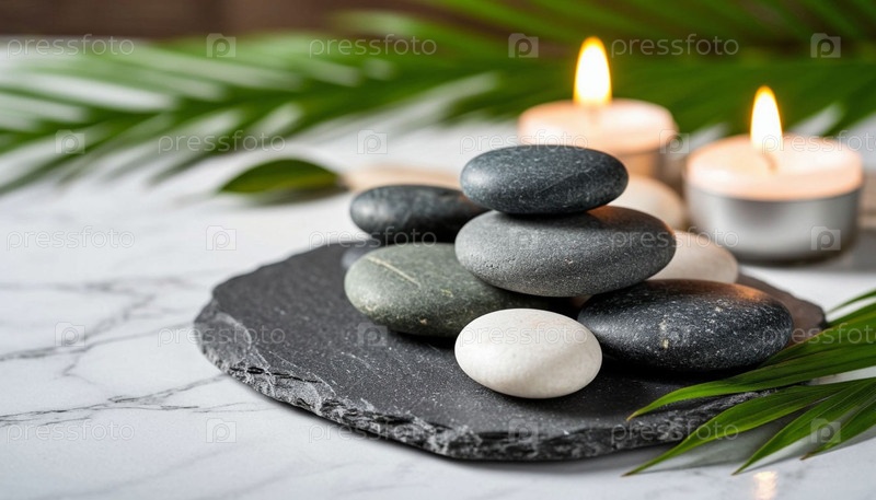 Спа предметы на мраморном столе. Сгенерированный ИИ