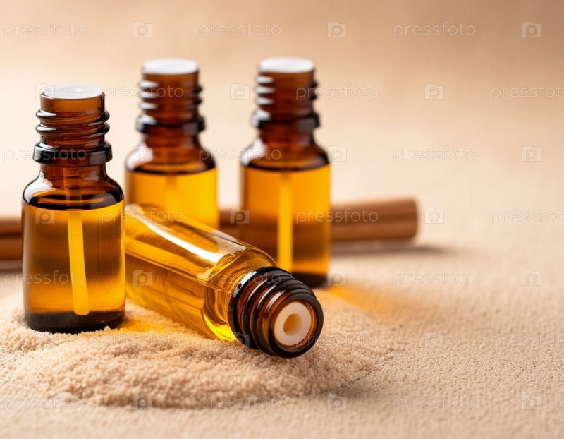 Массажные масла для СПА на бежевом фоне. Генерируется ИИ